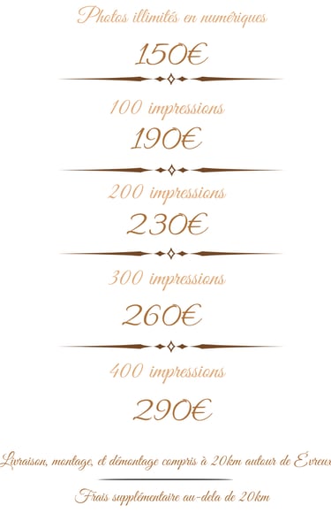 Inclus dans le prix: Votre encadrement de photo personnalisé, vos filtres à la prise de la photo mais aussi des éléments personnalisés (coeur, moustache, lunettes..)